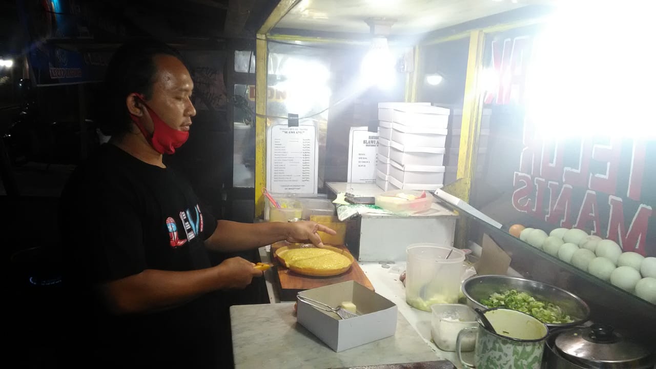 Di musim hujan seperti saat ini, tiap malam paling tidak sekitar 30 porsi martabak telur dan martabak manis ludes terjual. “Jualan selama ada pandemi belum bisa stabil. Apalagi ini musim hujan,” terang Hadi yang mangkal di lokasi tersebut sejak 2009.