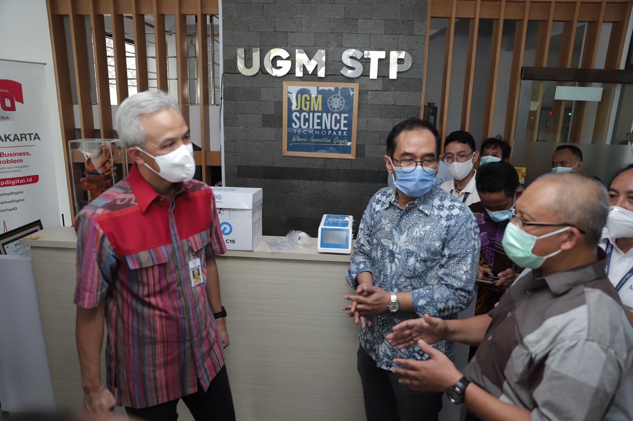 Ganjar mengunjungi STP UGM bersama perwakilan dari Dinas Kesehatan Jawa Tengah dan RSUP Dr Kariadi Semarang untuk melihat langsung cara kerja Genose serta aktivitas produksi yang dilakukan.