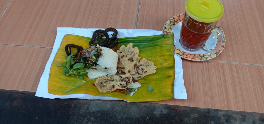 Menu sego gudang dengan lauk peyek laron, sangat istimewa. Makanan ini selalu mengingatkan kehidupan desa yang warganya selalu memenuhi makanan dari hasil bumi yang dipijaknya. (Ono/wiradesa.co)