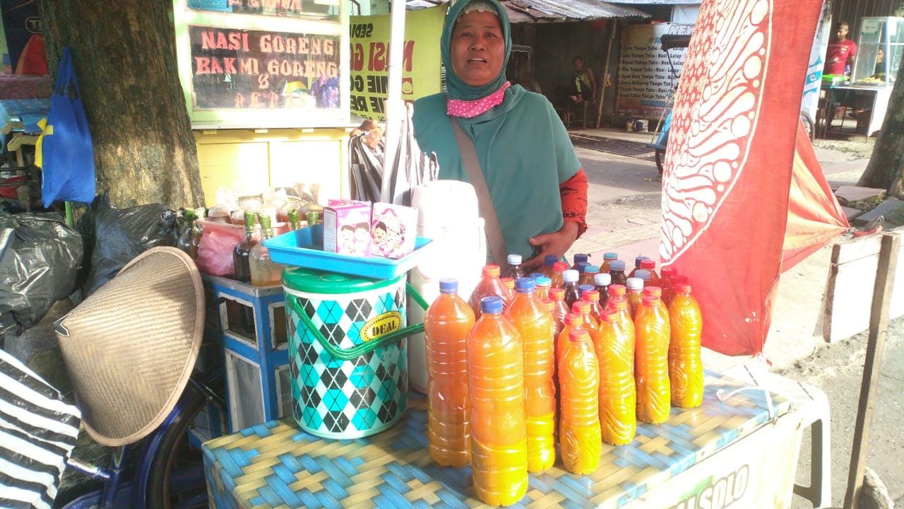 “Dibantu bapaknya bawa dagangan ini. Saya berangkat pagi pakai sepeda, ya secukupnya saja bawanya. Nanti siang bapaknya bantu antar jamu lagi pakai becak. Jadi sampai sore jamunya masih hangat,” jelas Parti.