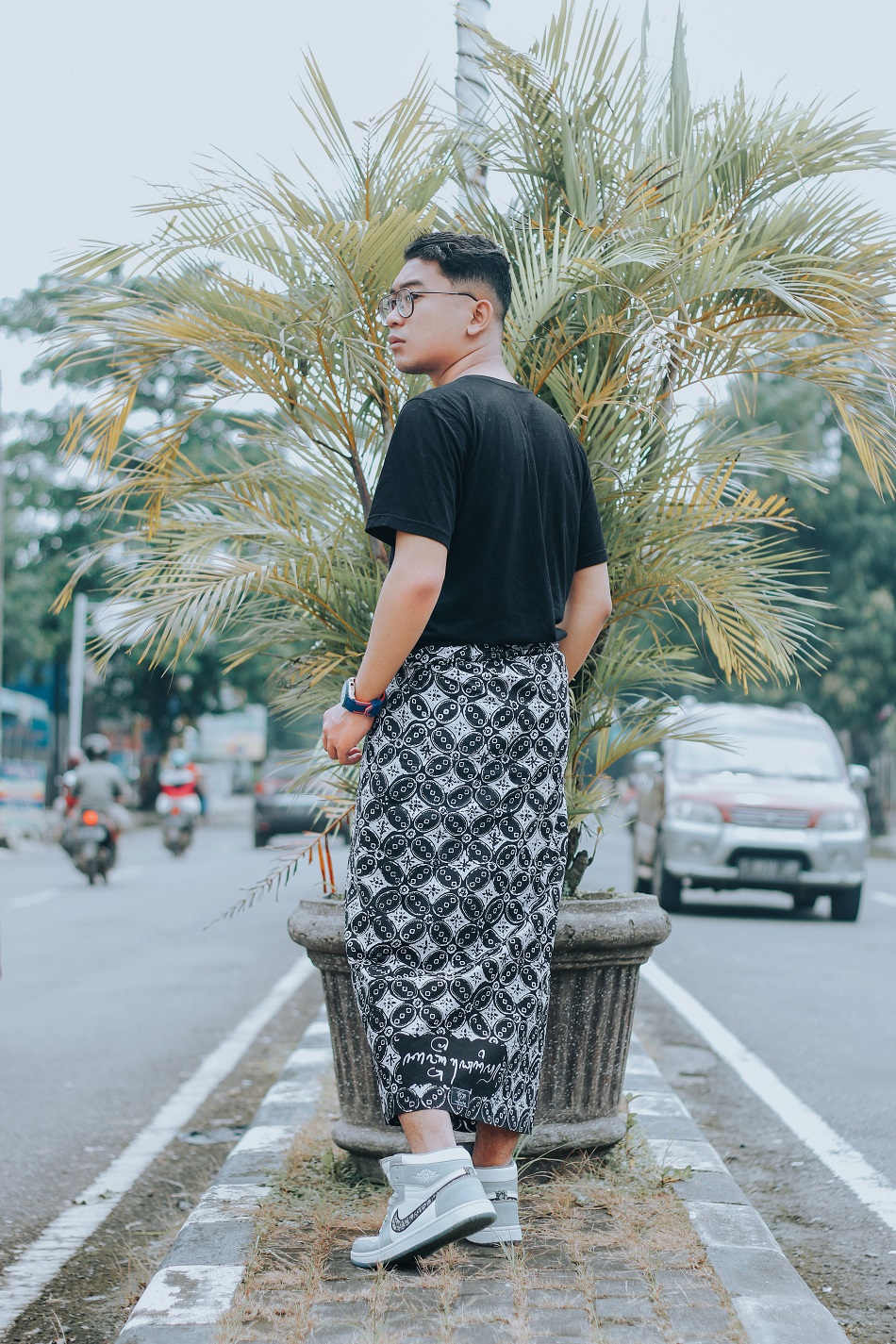 Desain motif kontemporer yang dikreasikan Sarung Kanjeng sangat mungkin untuk dipadu-padakan dengan style kekinian anak muda.