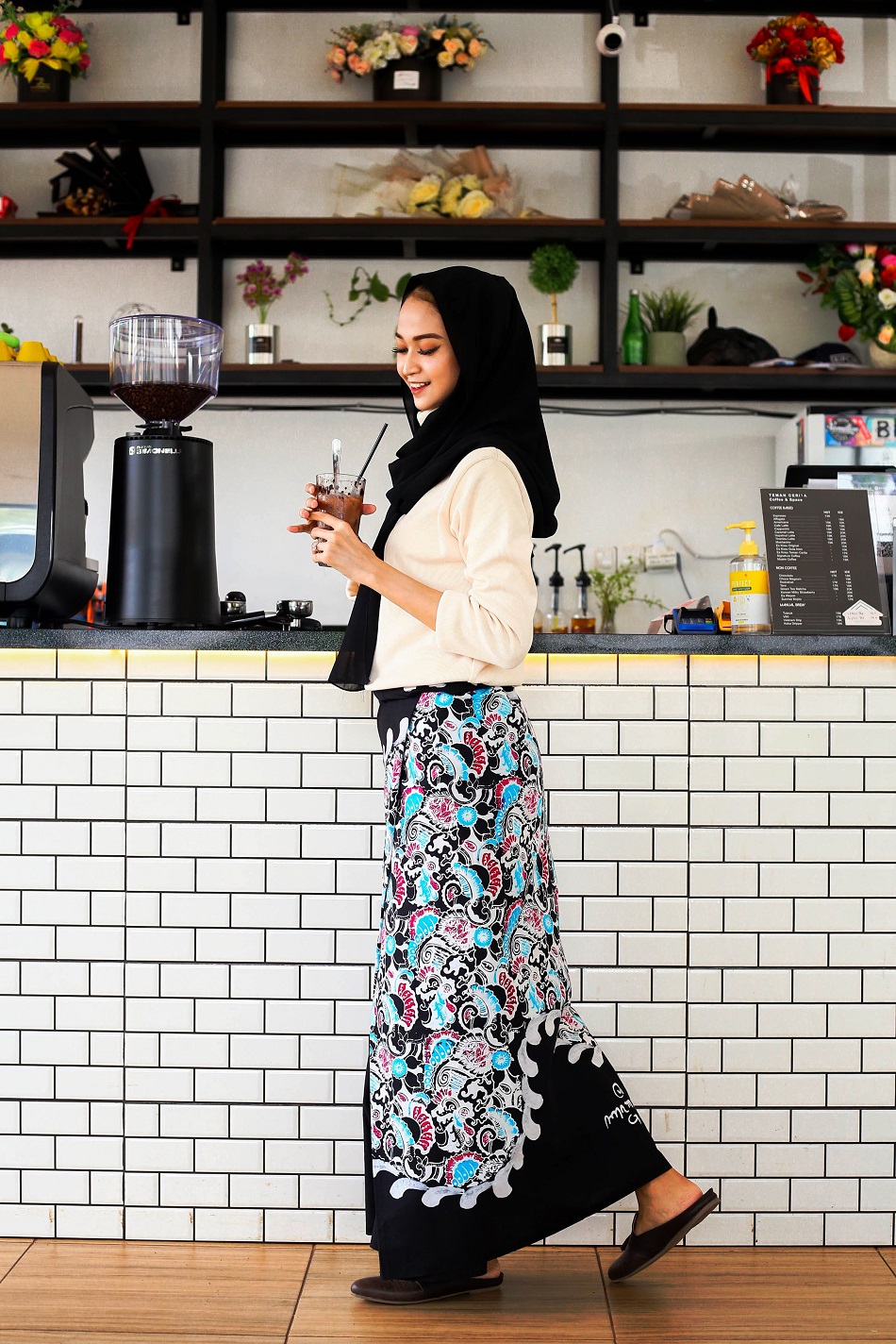 “Jadi sarung batik tidak hanya dipakai pas sholat atau di kawasan pesantren saja. Bisa juga untuk ke kafe atau warung kopi,” jelas Ma’ruf Al-Haddad, manajer kreatif Sarung Kanjeng dalam wawancara liputan (07/05/21).