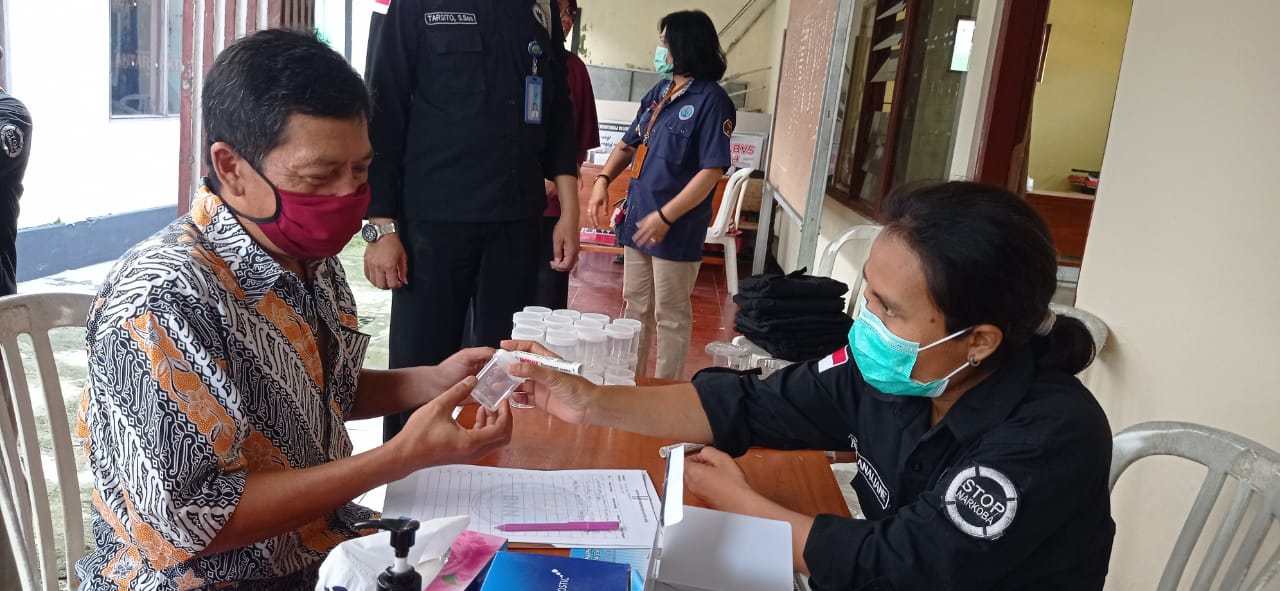 PURBALINGGA – Sejumlah 35 perangkat desa (termasuk Ketua RT), tokoh masyarakat dan tokoh pemuda di Desa Gandasuli, Kecamatan Bobotsari menjalani tes urine, kemarin. Kegiatan itu digelar dalam rangka deteksi dini penyalahgunaan Narkoba berupa cek urine di lingkungan Pemerintah Desa Gandasuli. Dengan hasil pemeriksaan seluruhnya negatif penyalahgunaan narkoba.