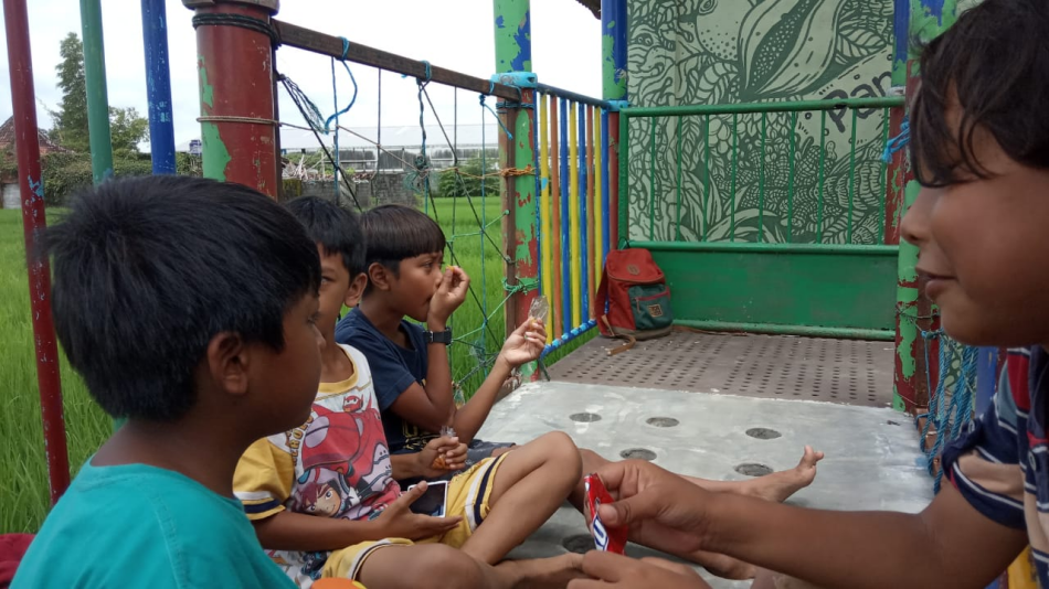 Saat itu, Rabu, 7 April 2021, anak-anak masih terlihat melakukan kegiatan belajar dengan ditemani para fasilitator. Bertemu dan bersapa dengan para peserta didik dan fasilitator, mereka turut membantu memanggilkan Yudhistira Aridayan, ketua di Pusat Kegiatan Belajar Masyarakat (PKBM) SALAM.