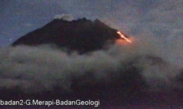 Jogja – Gunung Merapi memuntahkan lava pijar sebanyak puluhan kali dalam enam jam.