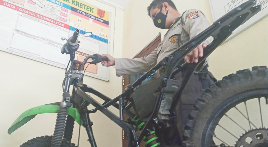 Kini barang bukti motor yang sudah turun mesin dan tinggal rangka itu disita penyidik Reskrim Polsek Kretek. Sebagaimana diketahui, motor KLX tersebut dilarikan wisatawan dengan dalih ingin disewa pada Selasa (6/4) lalu.