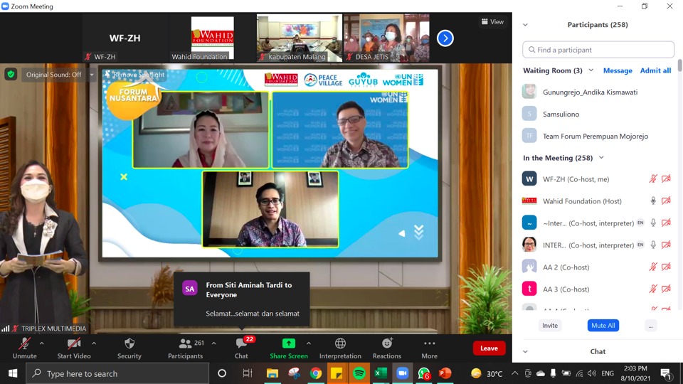 JAKARTA – Wahid Foundation bekerja sama dengan UN Women menyelenggarakan Webinar melalui Forum NUSANTARA (Gerakan Nasional Untuk Indonesia Damai, Adil, dan Setara) yang berlangsung secara daring pada Selasa, 10 Agustus 2021.