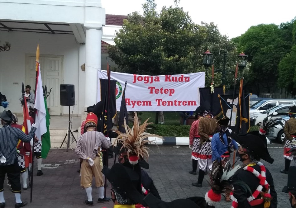 “Pada momentum ini kami menggunakan pakaian khas seni keprajuritan, tetapi kami di sini bukan untuk berperang. Kami menolak keras aksi anarkis, sehingga para pelaku anarkis di DIY harus diusut secara tuntas dan transparan,” tegas Nur Sukiyo.