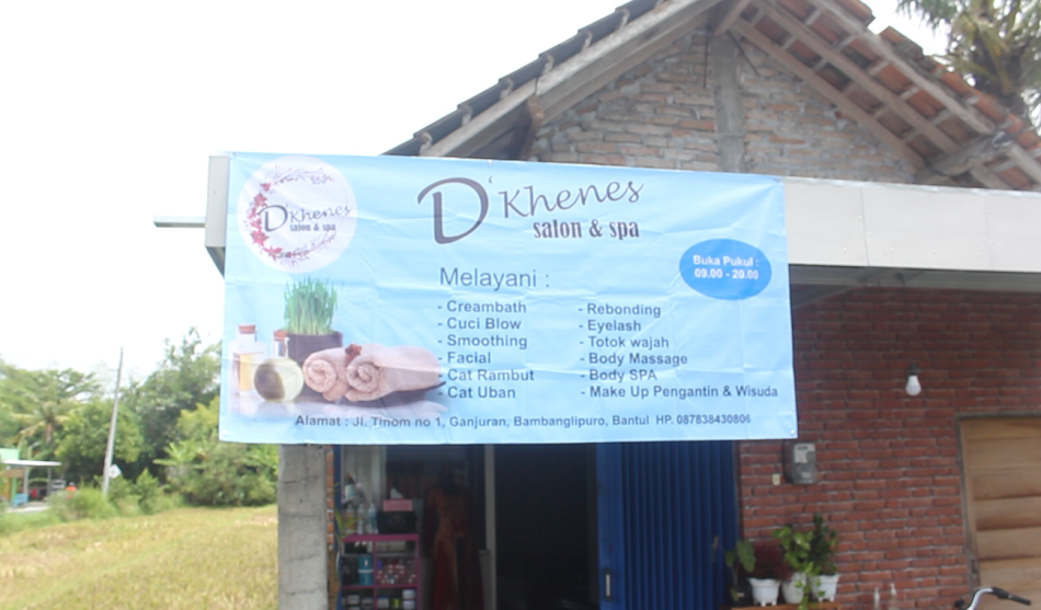 BANTUL – Salon dan Spa D’Khenes, usaha mandiri milik Endri Lestari mengambil lokasi di pedesaan. Ruang salon dan spa tak terlalu luas tetapi nyaman. Berada pada bagian paling depan satu bangunan memanjang ke belakang diapit persawahan di kawasan Jalan Tinom No 6, Gedogan, Sumbermulyo, Bangbanglipuro, Bantul. Meski berada di pedesaan, alamat Salon dan Spa D’Khenes terbilang mudah dicari.