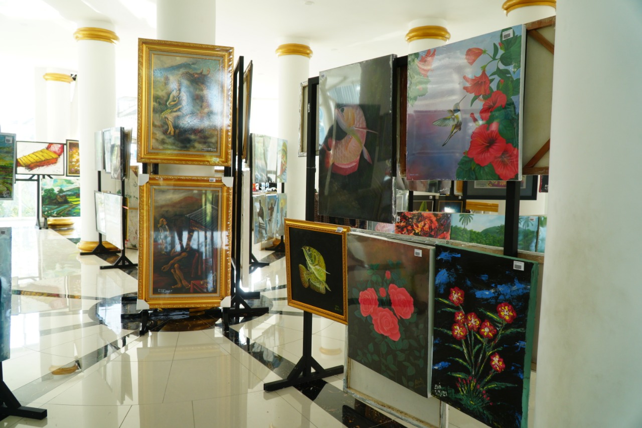 Lukisan yang dipajang banyak lukisan naturalis dan realis seperti kebanyakan aliran para pelukis di Banyumas Raya. Sementara karya lain berupa wayang dari beragam bahan, seperti rumput (wayang suket), karpet talang, kertas duplek, dan karton.