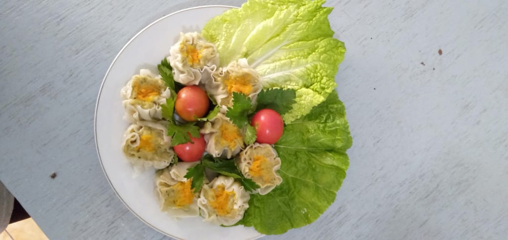Proses pembuatannya, kata Reina cukup mudah. Siapkan semua bahan. Proses diawali dengan membuat kulit dari bahan terigu. Kemudian dicetak menggunakan cetakan dimsum. Kukuslah selama 15 menit. Sekali kukusan sudah bisa disajikan dan dikemas. Sedangkan bagian isi ada beberapa pilihan. Ada varian isian udang, daging ayam, sapi, jamur dan kepiting.
