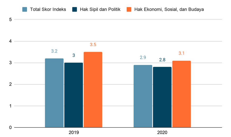 SETARA Institute for Democracy and Peace melalui Indeks Kinerja HAM mengemukakan bahwa kinerja HAM di Indonesia mengalami tren penurunan sebesar 0,3. Menurutnya, hal ini terjadi karena terdapat 96 vonis mati yang dijatuhkan pengadilan pada 2020. Angka ini meningkat drastis ketimbang 16 vonis yang dilakukan di tahun 2019. Selain itu, penyelesaian pelanggaran HAM berat yang terjadi di masa lalu seperti kasus Semanggi I dan II, serta kasus Munir juga masih berlangsung berlarut-larut.