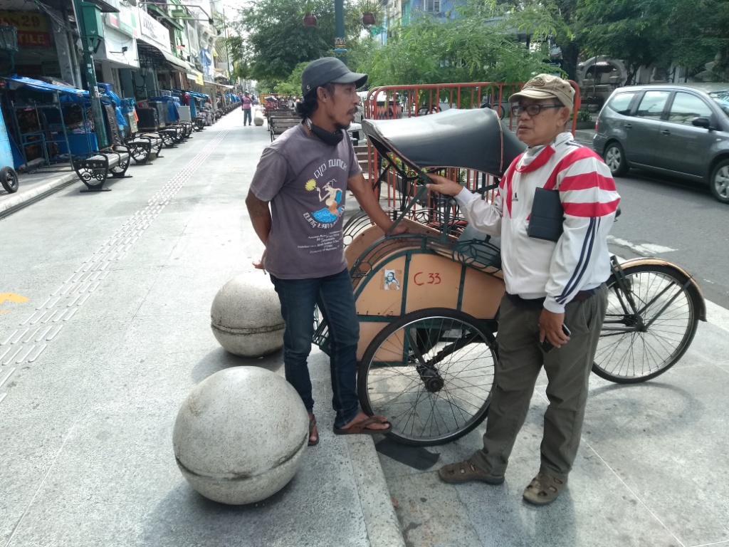 Jogja.siberindo.co – Seorang tukang becak di Malioboro Yogyakarta diberi uang tidak mau. Meski sangat membutuhkan, tetapi dia tidak mau mendapatkan uang tanpa keluar keringat.