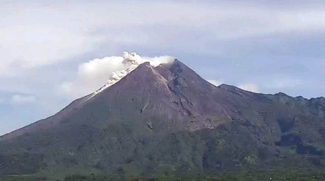 “Teramati 9 kali guguran lava pijar dengan jarak luncur maksimum 1.500 m ke arah barat daya. Asap kawah juga teramati berwarna putih dengan intensitas sedang hingga tebal dan tinggi 30 meter di atas puncak kawah,” sebutnya.