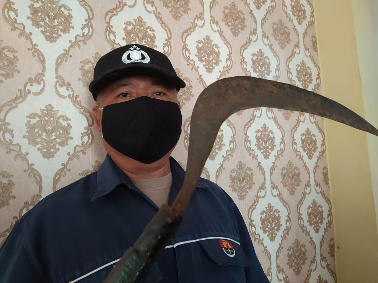 “Saat petugas datang, DP sempat mengelak jika sajam dengan panjang gagang sekitar 60 Cm itu miliknya. Namun setelah diintrogasi, ia mengakui jika sajam itu miliknya yang dibawa dari rumah,” kata Kompol Aan, Jumat (16/4).