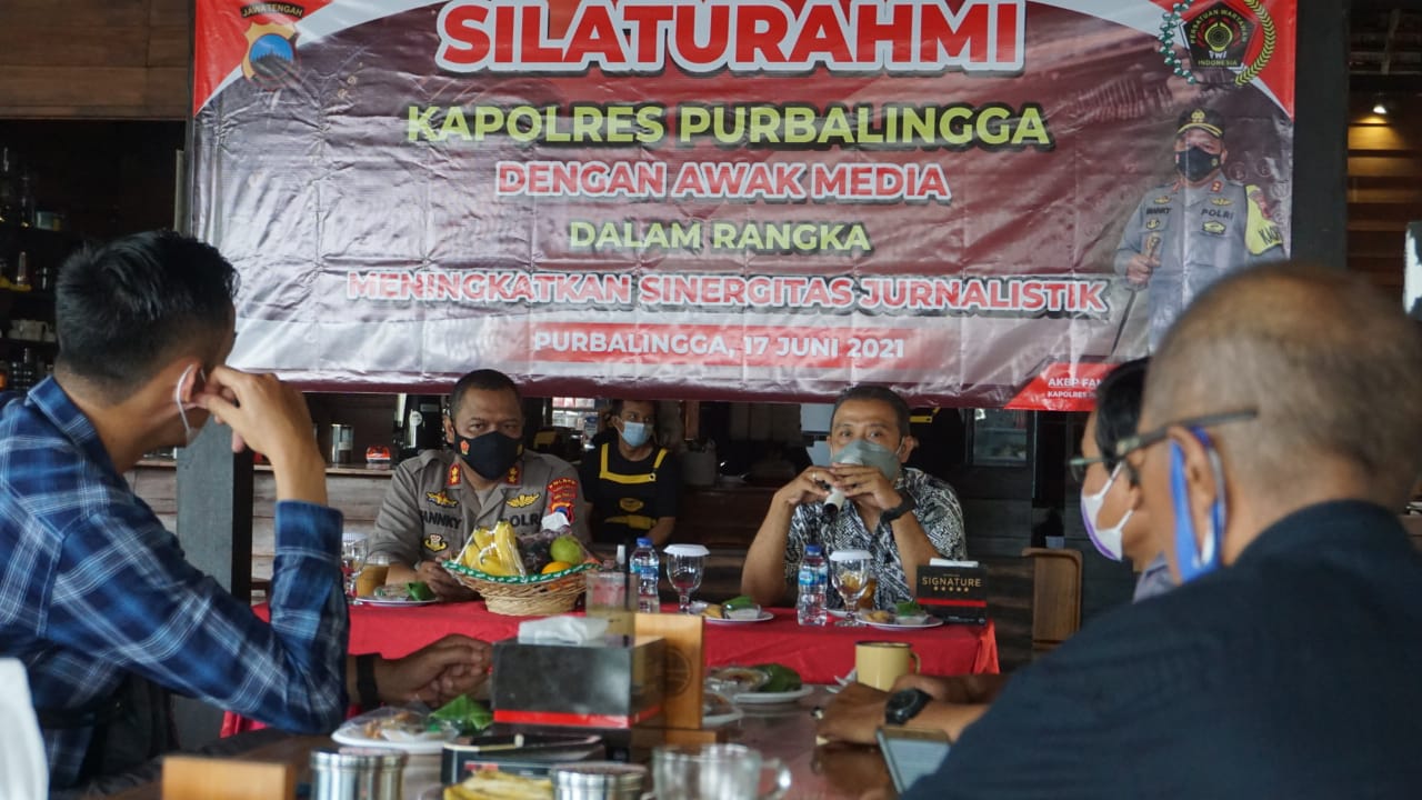 PURBALINGGA – Kapolres Purbalingga AKBP Fannky Ani Sugiharto mengajak wartawan untuk bersinergi, saling mengisi dalam memberikan informasi yang valid kepada masyarakat. Hal itu disampaikan Kapolres saat melaksanakan silaturahmi dengan wartawan berbagai media di Kafe Batok Purbalingga, Kamis 17 Juni 2021.