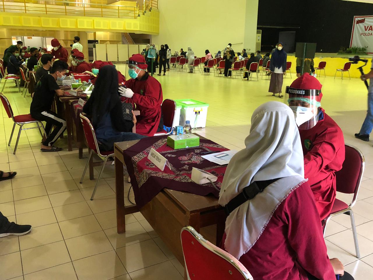 YOGYAKARTA – Senat Mahasiswa (SEMA) Universitas Islam Negeri (UIN) Sunan Kalijaga Yogyakarta berkolaborasi dengan Kepolisian Daerah (Polda) DIY serta Satgas Covid-19 Pengurus Besar (PB) Pergerakan Mahasiswa Islam Indonesia (PMII) menggelar vaksinasi Covid-19. Vaksinasi yang dilakukan pada Sabtu 17 Juli 2021 di Gedung Prof Amin Abdullah (Multi Purpose) UIN Sunan Kalijaga ini sebagai bentuk dukungan terhadap program pemerintah.