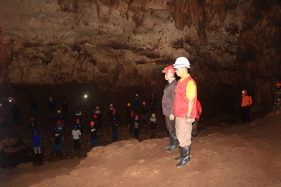 GUNUNGKIDUL – Karang Taruna Puspita Harapan Desa Ngeposari, Kecamatan Semanu, Kabupaten Gunungkidul, Daerah Istimewa Yogyakarta (DIY), melaksanakan upacara HUT ke-75 Republik Indonesia dengan cara yang unik dan menantang. Kegiatan mengenang detik-detik Proklamasi diselenggarakan di dalam Goa Jlamprong Dusun Mojo dengan kedalaman 25 meter.