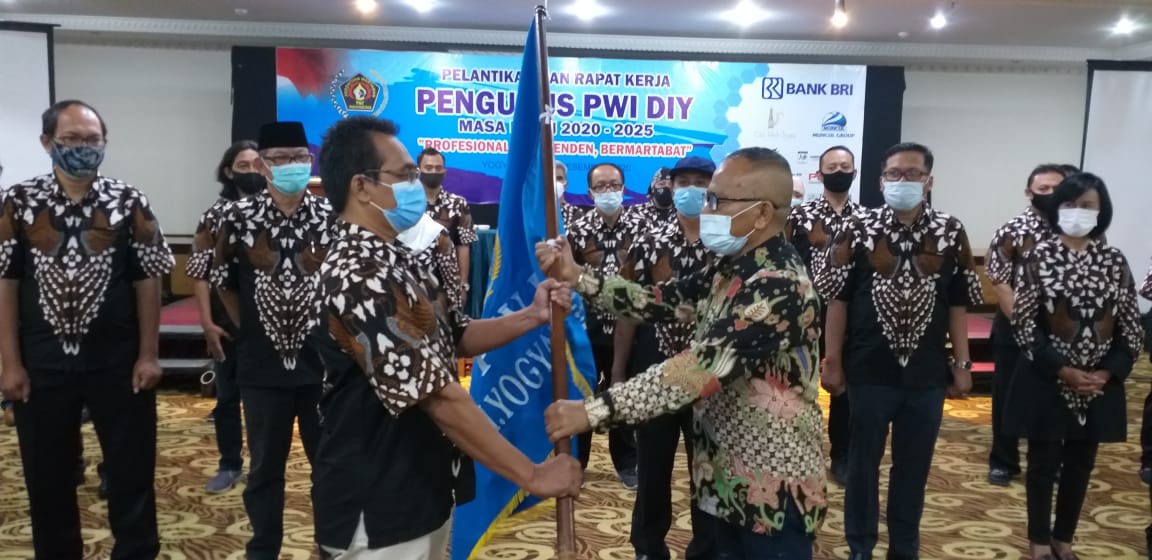 SLEMAN – Pengurus Persatuan Wartawan Indonesia (PWI) DIY masa bakti 2020-2025 dilantik oleh Ketua Umum Pengurus Pusat PWI Atal S Depari di The Rich Jogja Hotel, Jalan Magelang Sleman, Kamis (17/12/2020). Pelantikan ditandai penyerahan bendera PWI DIY oleh Atal S Depari kepada Ketua PWI DIY Hudono SH.