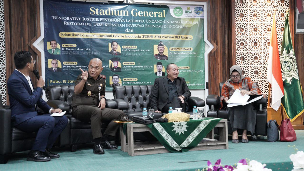 Menurut keterangan pers Forsiladi yang diterima kantor pusat Serikat Media Siber Indonesia (SMSI), kegiatan ini dihadiri oleh Rektor Universitas Muhammadiyah Jakarta (UMJ) Dr. Ma’mun Murod, M.Si, Dekan FISIP Universitas Muhamadiyah Jakarta, Dr. Evis Satispi, Kepala Kejaksaan Tinggi Provinsi DKI Jakarta, Dr. Reda Manthovani, Ketua Umum DPP FORSILADI, Dr. Endang Samsul Arifin, S.H.I.,M.Ag, Dewan Pakar FORSILADI DKI Jakarta, Prof. Andriansyah, Guru Besar Hukum Universitas Al-Azhar Indonesia (UAI), Prof. Dr. Suparji, S.H., M.H, Anggota Komisi 3 DPR RI, Dr. Didik Mukrianto SH, MH, dan Dosen Fakultas Hukum UMJ, Dr. Bahria Prentha, S.H., M.H, jajaran kepengurusan FORSILADI DKI Jakarta dan peserta Stadium General.