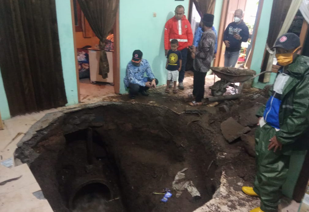 TEMANGGUNG – Keluarga Supadiyono (55) warga Dusun Karang Senen Rt 1 Rw 5 Desa Traji Kecamatan Parakan Temanggung dikejutkan dengan amblasnya lantai ruang tamu rumah yang ditempati.