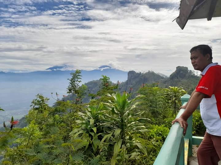 KULONPROGO – Tiba di kawasan wisata Puncak Suroloyo, matahari belum terlalu tinggi. Tetapi, harapan dapat menikmati pemandangan puncak- puncak gunung tertinggi di kejauhan sedikit terganggu awan.