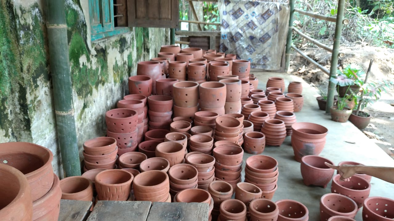 Ketika pandemi tiba, perajin banyak yang berinovasi membikin vas bunga. Salah satunya, Siis. Siis perajin yang sudah lama menekuni gerabah, kini mencoba membuat aneka vas bunga. “Melihat masyarakat banyak yang menggandrungi tanaman hias selama pandemi, kemudian saya mencoba berkreasi dengan membuat vas. Alhamdulilah, pemasaran cukup bagus,” urai Siis. Dengan dibantu anaknya, proses pemasaran vas tidak hanya secara langsung tetapi juga lewat online. Hasilnya cukup menggembirakan serta bisa untuk memenuhi kebutuhan keluarga.