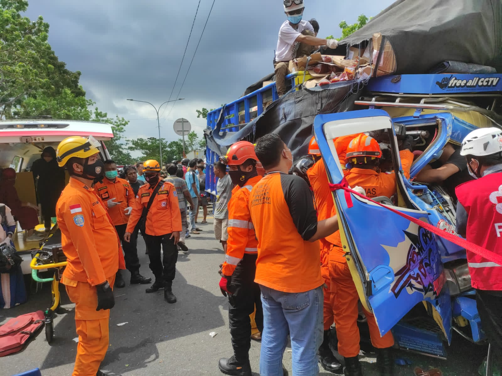 Korban terjepit kabin kemudi truk atas nama Aziz Priyo (30) warga Grabag Magelang Jawa Tengah. Guna mengevakuasi korban, Basarnas Yogyakarta memberangkatkan satu tim rescue yang dilengkapi peralatan ektrikasi untuk evakuasi kecelakaan lalu lintas. Sesampai di lokasi, tim rescue yang diberangkatkan berkordinasi dengan potensi SAR yang sudah ada dilokasi dan selanjutnya melakukan evakuasi bersama dengan SAR Gabungan.