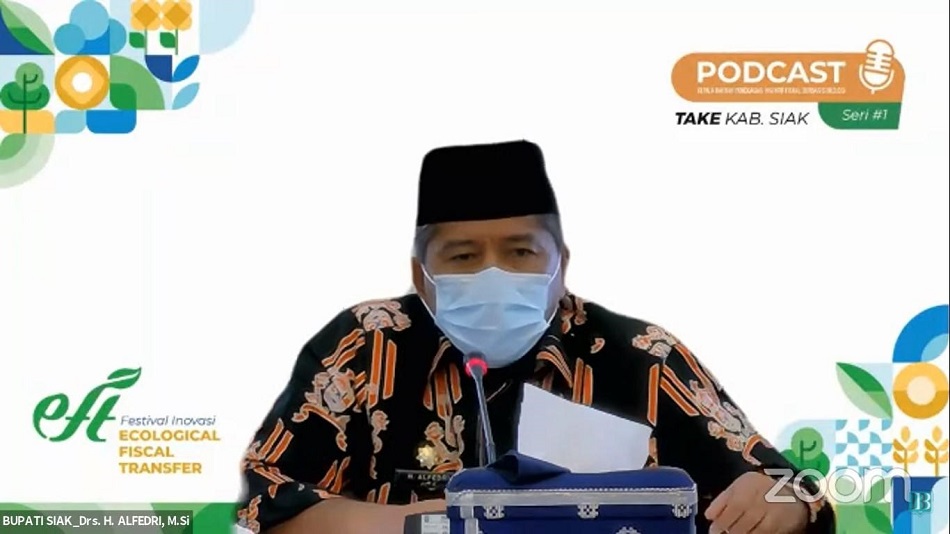 Hal ini ia sampaikan dalam Podcast “Kepala daerah Penggagas Insentif Fiskal Berbasis Ekologi” seri ke-1 Transfer Anggaran Kabupaten berbasis Ekologi (TAKE) Kabupaten Siak, Selasa 21 September 2021.