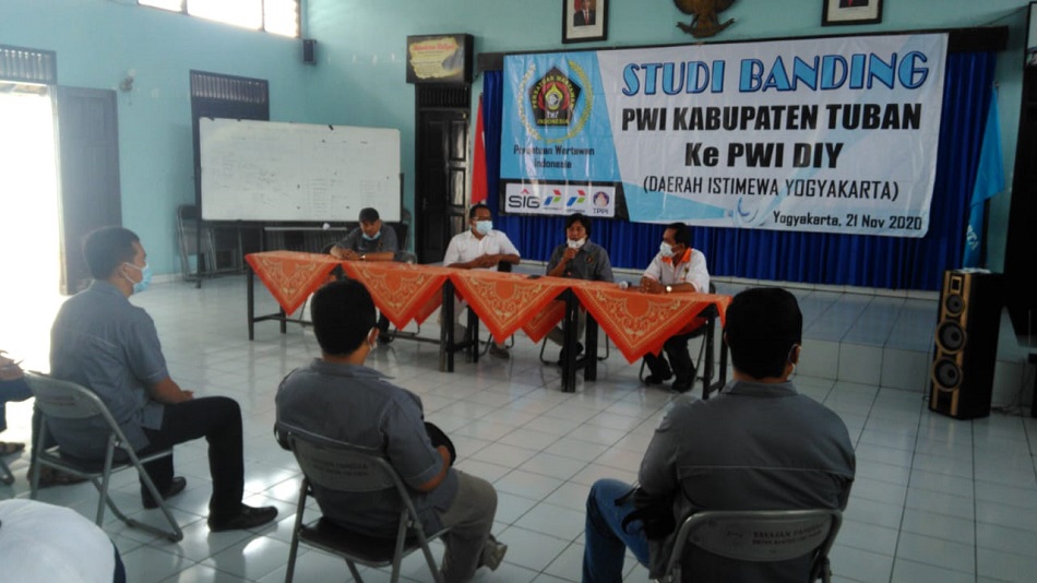 YOGYAKARTA – Persatuan Wartawan Indonesia (PWI) Kabupaten Tuban, Jawa Timur melakukan ‘Studi Banding’ ke PWI DIY, Sabtu (21/11/2020). Banyak hal yang didapat dan dipelajari oleh pengurus PWI Tuban dari PWI DIY terkait pengembangan organisasi dan pemberdayaan anggota (wartawan).