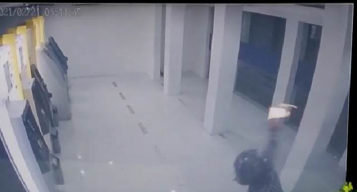 Kejadian itu menimbulkan suara ledakan. Satpam yang saat kejadian berada di ruang CCTV mendengar suara ledakan itu. Dia kemudian mencari sumber suara itu. Sesampainya di gerai ATM, saksi melihat api berkobar hebat. Dengan sigap satpam kemudian memprot pemadam api untuk menjinakkan kobaran si jago merah.
