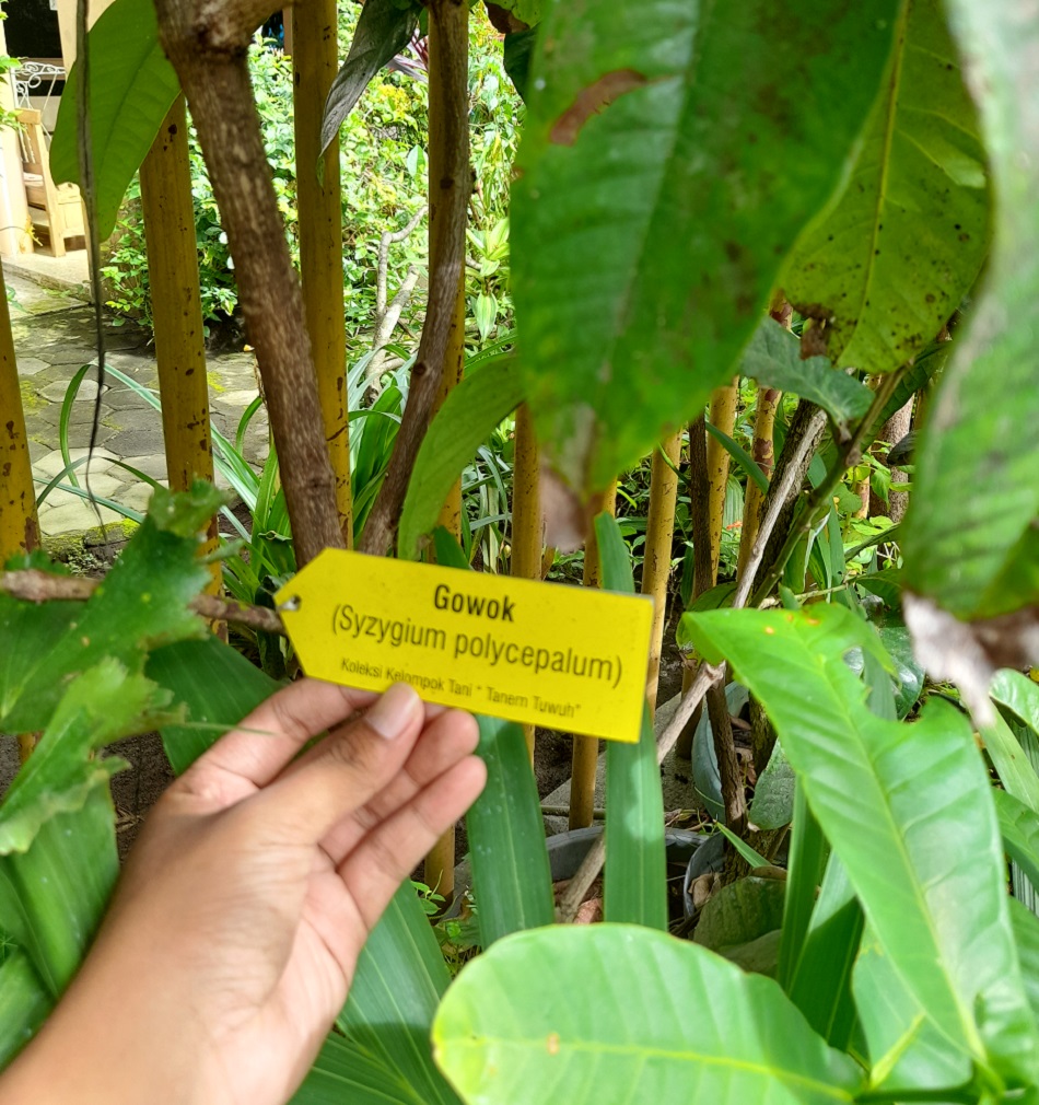 “Ada yang kita datangkan dari luar Jogja. Koleksi tanaman kita itu, tanaman yang ikonik. Ikoniknya Kota Jogja. Seperti pohon Kenari, ini kan nama jalan dekat Timoho. Terus yang ini pohon Gayam, ini juga ada nama kampung Gayam, yang ini pohon Kepel, ini juga ikoniknya Jogja. Terus yang ini pohon Gowok. Dusun Gowok juga ada toh,” kata Agus Nugroho, sambil menunjuk tanaman-tanaman yang tertata rapi di depan rumahnya.