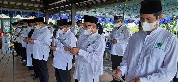 KULONPROGO – Pengurus Daerah Ikatan Persaudaraan Haji Indonesia (IPHI) Kabupaten Kulonprogo masa bakti 2020-2025 dilantik Drs H Untung Sukaryadi MM mewakili Ketua IPHI DIY Drs H Hafidh Asrom MM, di Joglo Sadewa Wates, Sabtu (20/02/2021). Sebelum dilantik, terlebih dahulu para pengurus membaca ikrar.