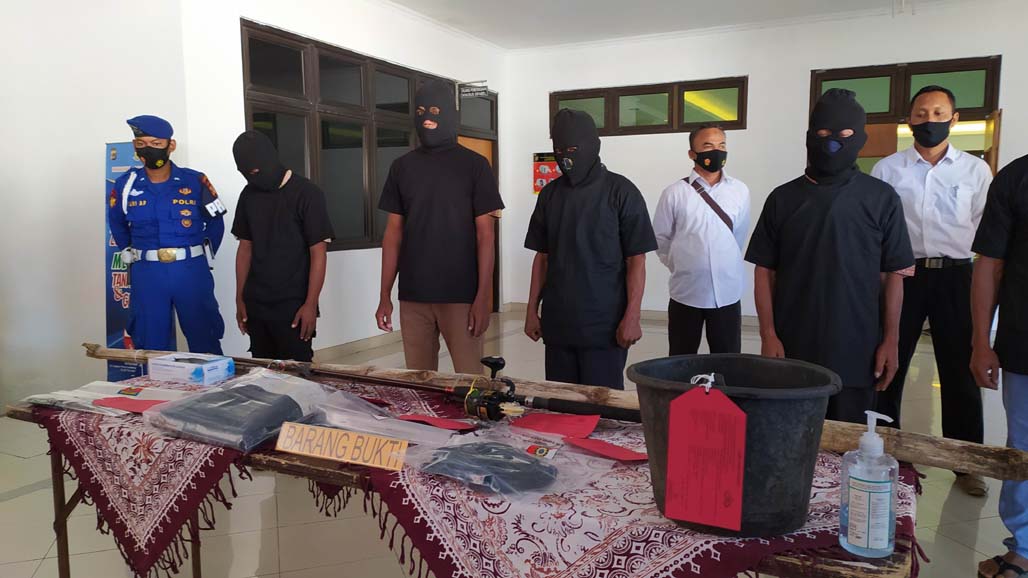 Selain meringkus pelaku, kepolisian juga mengamankan barang bukti berupa alat pancing yang digunakan untuk menangkap penyu, pisau untuk menyembelih, tampar untuk mengikat dan terpal untuk membungkus.