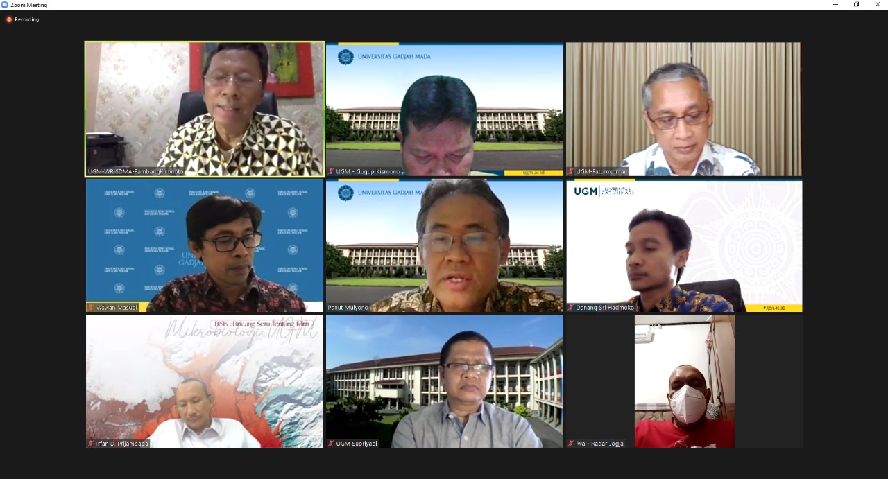 YOGYAKARTA – Rektor UGM, Prof. Ir. Panut Mulyono, M.Eng., D.Eng., IPU, ASEAN Eng., menyampaikan pernyataan sikap UGM terkait penguatan solidaritas dan kegotongroyongan menghadapi Covid-19, Jumat 23 Juli 2021.