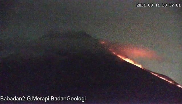 Kepala Balai Penyelidikan dan Pengembangan Teknologi Kebencanaan Geologi (BPPTKG) Hanik Humaida mengatakan, pada periode pengamatan selama 24 jam atau tepatnya Rabu (24/3/2021) pukul 00.00 WIB – 24.00 WIB,  teramati sejumlah guguran lava yang keluar dari puncak Merapi. Jarak maksimum luncuran tersebut mencapai 1.000 meter ke arah barat daya.