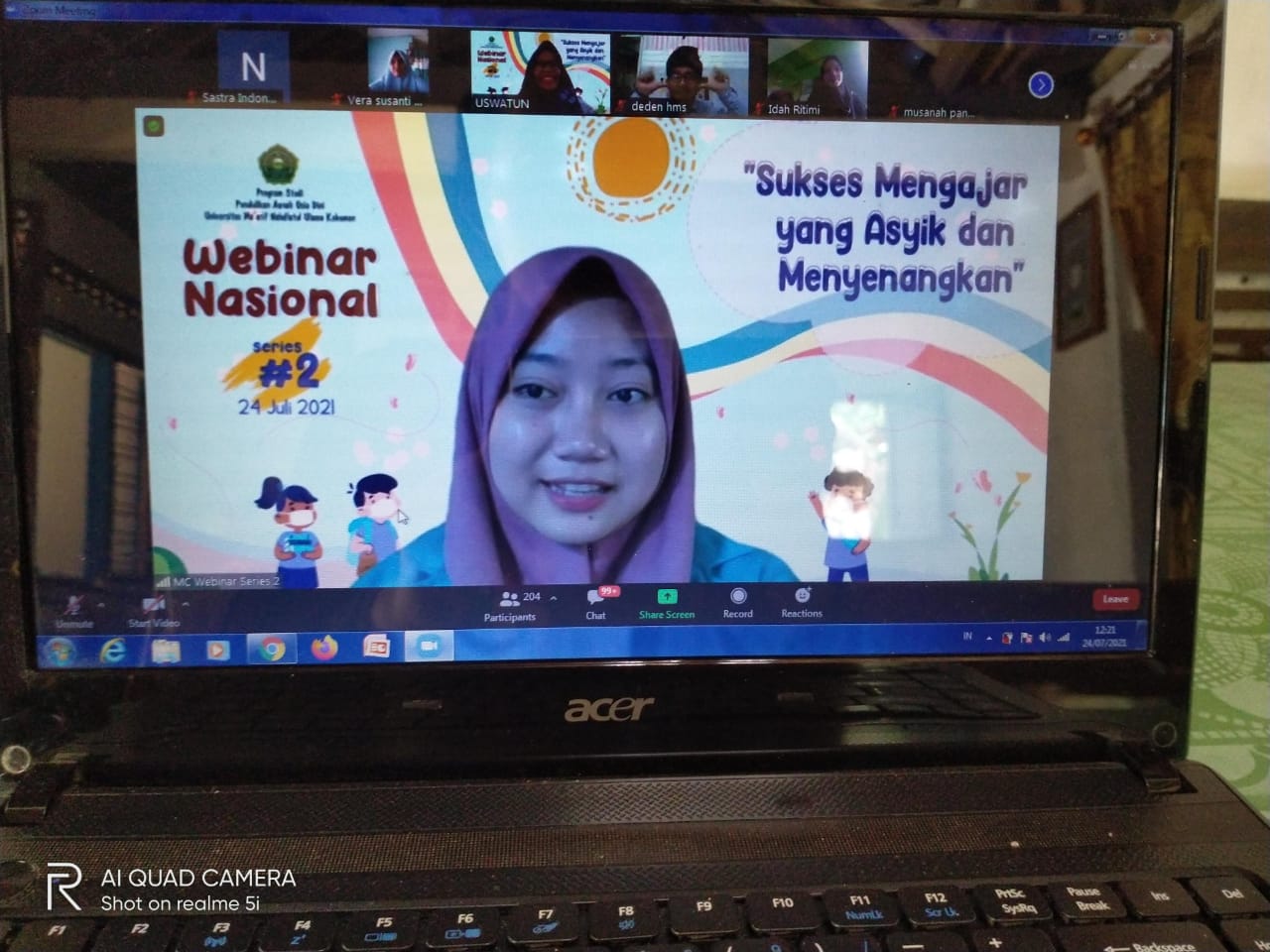 Webinar diikuti mahasiswa Prodi Paud UMNU serta dari masyarakat umum. Tampil sebagai moderator Uswatun Khasanah MPd yang juga dosen prodi Paud UMNU. Sedangkan pemateri Kang Deden, Founder GURAME (Guru Asyik dan Menyenangkan).