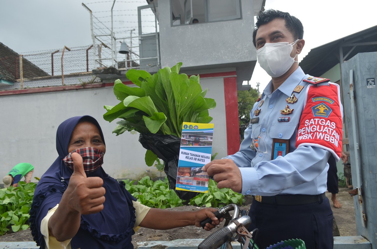 Kegiatan pembagian sawi dan kangkung sekaligus sebagai bentuk public campaign Rutan Kelas IIB Wates dalam membangun Zona Integritas Menuju WBK/WBBM dan membantu warga sekitar yang terdampak PPKM. Sebanyak 100 ikat sawi dan kangkung telah dibagikan khususnya kepada warga kurang mampu.