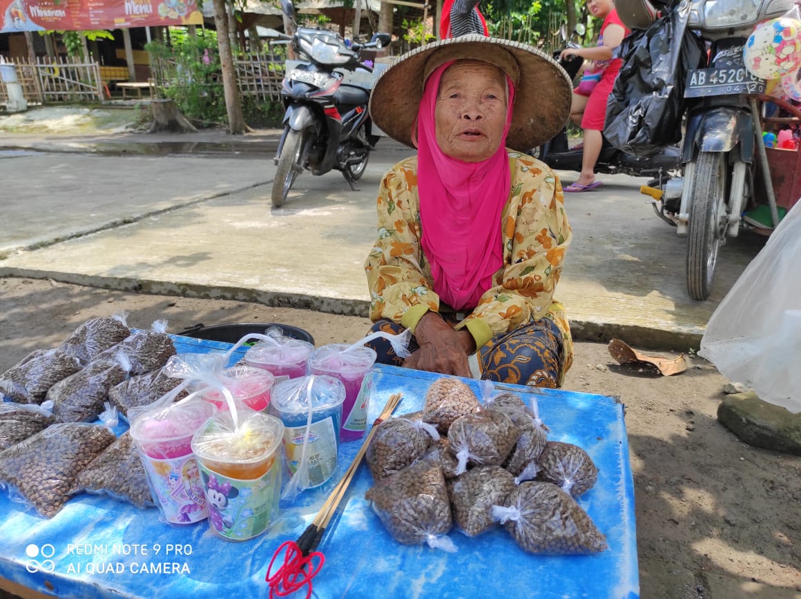 Tidak banyak yang dijual simbah. Hanya dua macam, pakan ikan dan mainan gelembung. Pakan ikan dijual Rp1.000 dan Rp2.000. Sedangkan mainan gelembung dijual Rp5.000 per buah. Murah, tapi menyenangkan.