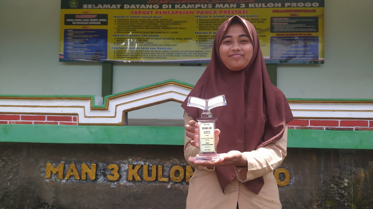 KULONPROGO – Sebuah proses tak akan mengkhianati hasil. Ungkapan itu diyakini benar oleh Endar Sinta Purwaningsih (17), siswi Kelas 12 IPS 2 MAN 3 Kulonprogo. Ia meraih predikat Juara 3 dalam MTQ Kabupaten Kulonprogo Kategori Tilawah Dewasa Putri, pada Sabtu 20 Maret 2021.