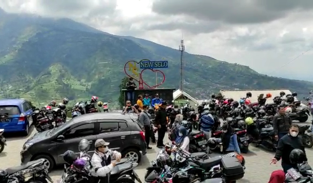 Pada Minggu 29 Agustus 2021, tampak ratusan wisatawan, kebanyakan berkendara sepeda motor memadati area parkir di sekitar spot foto tertulis New Selo. Mereka datang berombongan dari berbagai daerah di Jawa Tengah dan Daerah Istimewa Yogyakarta.