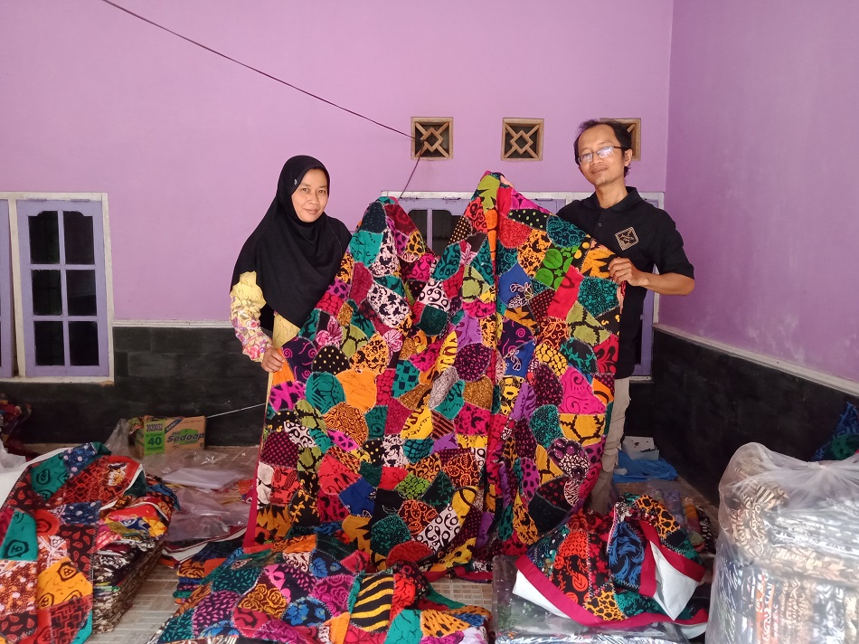 “Bahan baku perca kainnya saya ambil dari pekalongan, bahkan pernah diantar satu truk gitu, ada yang motif batik, ada pula yang motif biasa,” ujar Beny. Ada delapan karyawan yang stanby di rumah produksi Beny, dan masih ada puluhan lainnya yang membawa pulang pekerjaannya.
