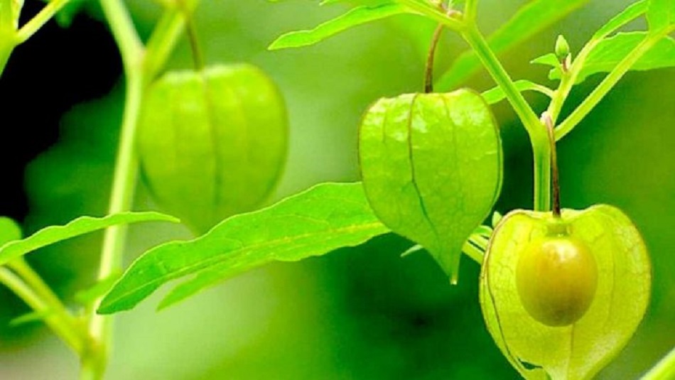Bunga tunggal, kecil, berbentuk lonceng, berwarna putih, muncul di ketiak daun. Tangkai benang sari berwarna kuning. Buah berbentuk bulat, diselubungi oleh kelopak, sepintas seperti lampion kecil. Kelopak tersusun dari lima daun kelopak yang berfungsi melindungi buah dari serangan hama. Buah memiliki rasa manis apabila sudah matang dan asam ketika masih mentah.