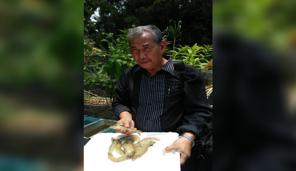Gambar 2. Foto peneliti beserta hasil udang sistem resirkulasi.