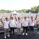 Sekjen Partai Gerindra Ahmad Muzani menghadiri acara jalan sehat dan pesta rakyat yang digelar oleh DPD Gerindra Lampung, di Stadion Pahoman, Minggu