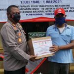 PURBALINGGA – Polres Purbalingga membagikan sembako bagi warga terdampak Covid-19. Selain itu, juga membagikan satu set peralatan penyemprotan disinfektan untuk pondok pesantren