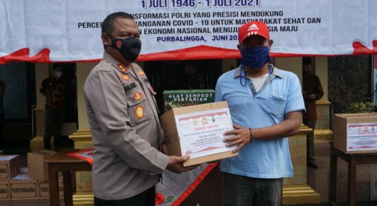 HUT Bhayangkara, Polres Purbalingga Bantu Desa dan Pesantren yang Lockdown