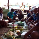 KULONPROGO – Nasi uduk, ingkung ayam, nasi tumpeng beserta sayur pelengkap dan minuman es dawet disajikan saat istirahat kerja bakti mendirikan gardu