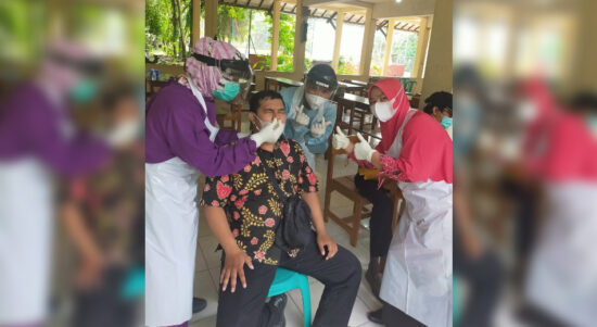 PURBALINGGA – Sebanyak 104 siswa SMPN 1 Purbalingga menjalani rapid test antigen di sekolah, Kamis 1 April 2021. Rapid test antigen dilakukan