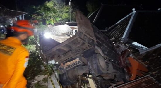 Kecelakaan Dump Truk Terperosok Hantam Rumah, Sopir Tewas Terjepit